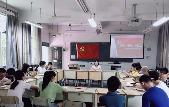 首先支部书记吴蕴君老师对毕业生党员顺利完成学业、在大学里明确信仰表示祝贺。毕业生党员离校主题教育活动作为学生党员毕业前的一堂党课和一次党的组织生活,这是每届毕业生党员都要接受的一次集中主题党性教育,希望同学们不忘入党的初心,自觉强化党员身份意识、责任意识,要坚定理想信念、增强党性修养、发挥模范作用。