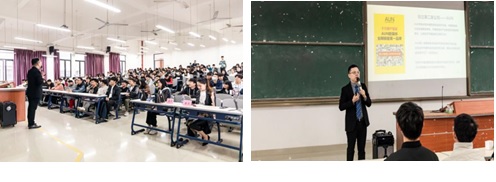 下午2点30分,曹慧敏学姐通过简短的发言后将话筒交给了吴家淡老师。吴家淡老师以自身经历分享了自己发现商机先后服务于三家公司的经历,提醒同学们应该多观察自己所处的环境,发现竞争的切入点,利用自身的优势赢得竞争。同学们热情逐渐高涨,积极的向吴家淡老师提出自己的疑问,吴家淡老师幽默耐心的引导同学们寻找自己想要的答案,帮助同学们在创新创业的迷茫中找寻方向。