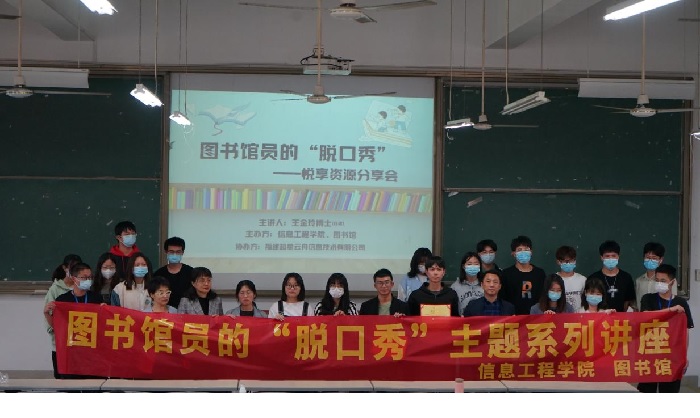 “书香绵延,文脉不断”,优良的学风是激励学生奋发向上,努力成才的强大精神力量,学风是一种积淀,更是一种氛围,为进一步加强学院学风建设,更好地营造“书香信工”的阅读氛围,丰富学生校园文化生活,推动学院学子更好地了解图书馆、走进图书馆,感受图书文化的魅力。近日,学院与校图书馆联合举办“图书馆员的脱口秀”主题系列活动,本系列活动由校图书馆王金玲老师主讲,开元集团网站学生参加。