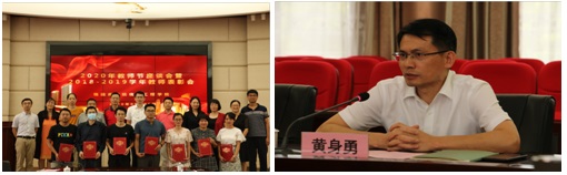 本次会议共三项议程。第一项议程,由黄其勇书记为荣获2018-2019年院优秀教师和院优秀教育工作者的老师们颁奖并合影留念。颁奖环节之后,信工学子献上一首《园丁颂》诗朗诵以表达对老师的崇高敬意。第二项议程,由行政、辅导员代表、新进高层次人员代表以及各系教师代表发言交流。院党委书记应永胜和院长林勇总结发言。最后,由校纪委书记黄身勇对本次座谈会做总结发言,充分肯定了学院教育工作者们在过去一年中所取得的成绩,表达了对全体教职员工的节日问候,并对大家提出新的要求与希望。