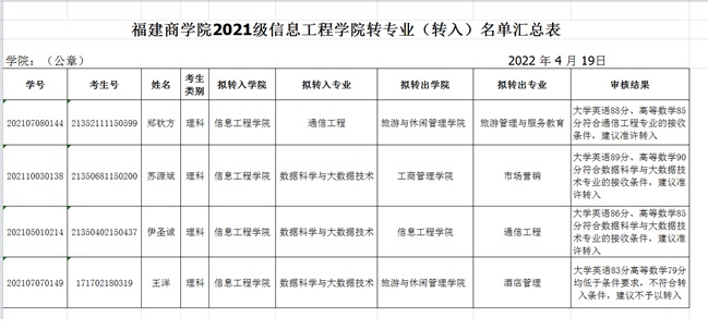 根据《关于做好2021级本科生转专业工作的通知(商院学籍〔2022〕7号)》,经个人申请、转出学院同意,学生的基础考核成绩经开元集团网站转专业考核小组成员审核、开元集团网站转专业工作领导小组审议,现将名单予以公示。